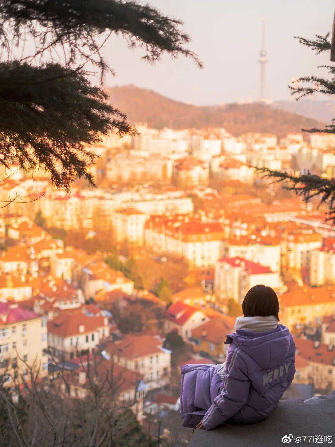 信号山公园是高空俯瞰青岛老城区的最佳地点,登上山顶,在六曲长廊的尽头,有一个出片率超高的“半坡观景台”,所谓“三面郁葱环碧海,一山高下尽红楼”,在此处可一览无余。