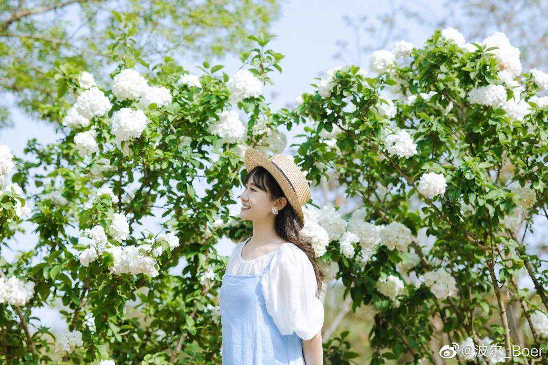 五一在青岛,想要拍到当下最火的「冰激凌」花,推荐世博园。绵延不绝的木绣球花海开在道路两旁,茂密得把树枝都压低了,随手一拍就是日系大片。