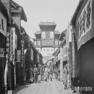 清朝末年的景象,路边都是商贩和店铺。