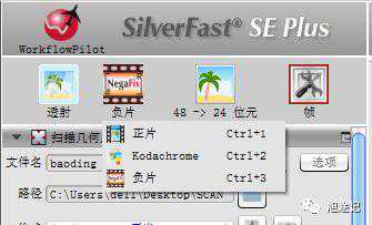 5.SilverFast软件集成了柯达、富士等12家常用胶片制造商,在扫描时会根据该胶片的色彩特性进行一次自动优化,这里我们选择相应的底片型号就好。