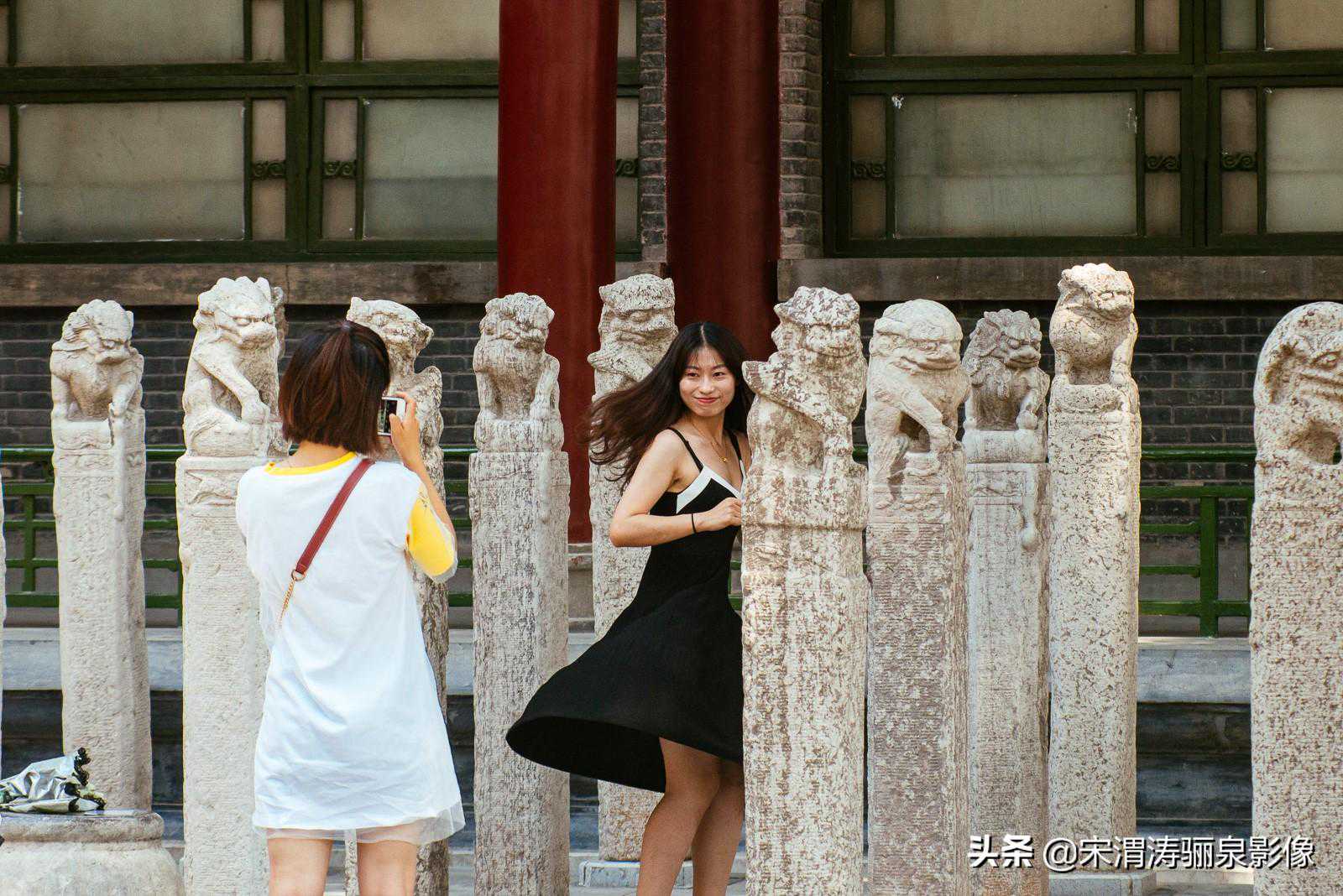 随后我漫步退出,走进拴马桩的世界,在其中寻找摄影的灵感和美丽,偶遇一个美丽的少女正在摆拍,匆匆忙忙也留下了她们美丽的倩影。