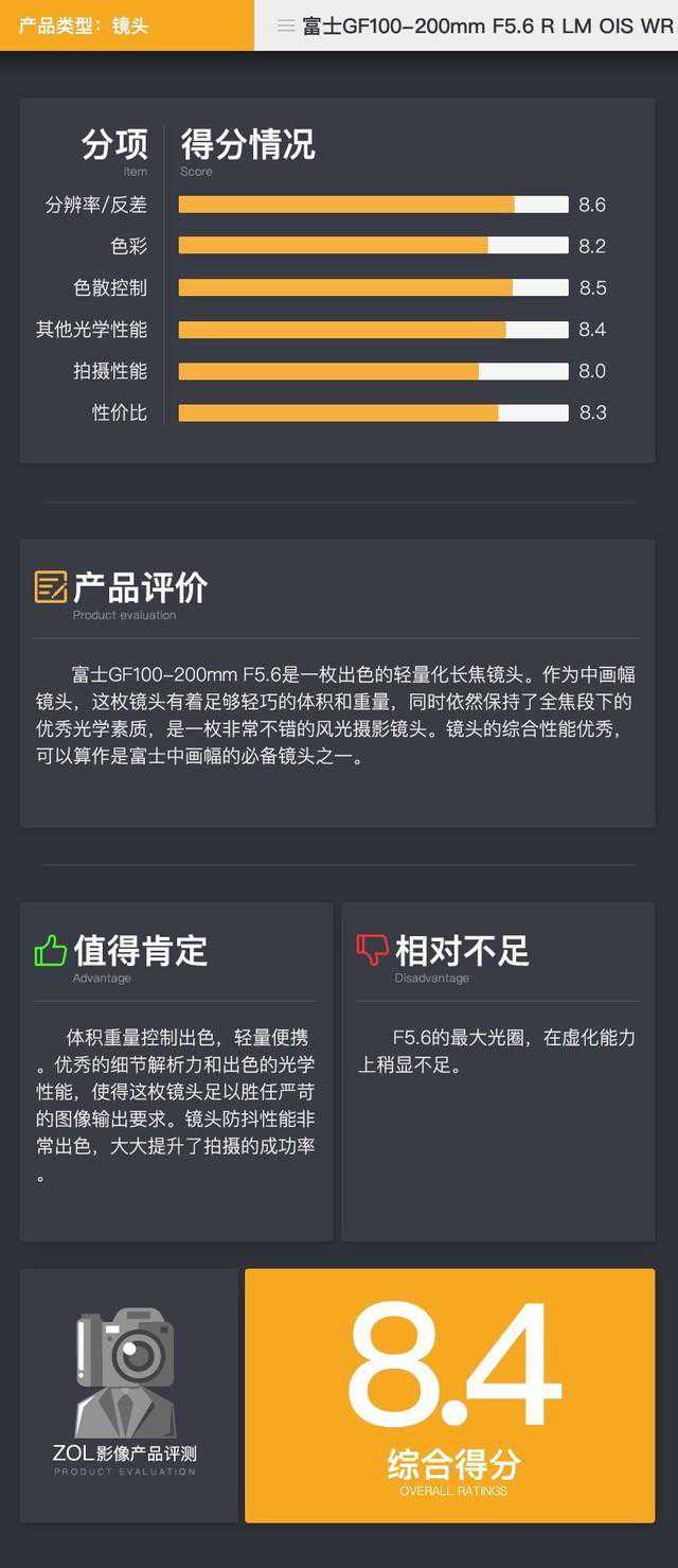 富士镜头(下文简称富士镜头),是一枚轻量化的中画幅长焦镜头,目前官方售价为14350元,售价并不算高,性价比相当不错。对于中画幅系统的镜头而言,这枚镜头等效焦距为79-158mm,重量为1050g,便携性出众。