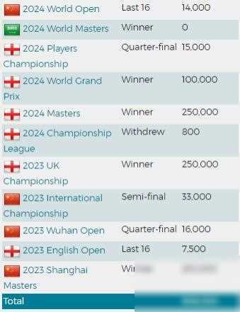 121万镑!这个数字让人瞠目结舌!奥沙利文不仅在赛场上展现出了非凡的球技和过人的技巧,更是收获了丰厚的奖金。其中,6万镑的亚军奖金更是令人瞩目,这足以证明他在比赛中的出色表现。而赛季累计121万镑的奖金更是让人震惊,这充分展现了他在斯诺克界的统治地位和无可撼动的实力。