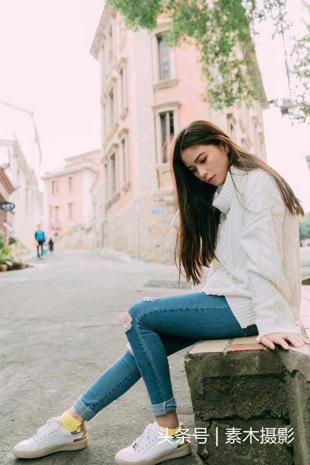 2、转角较高,建议坐在前方台阶,模特坐低,拍摄者采用低角度仰拍。