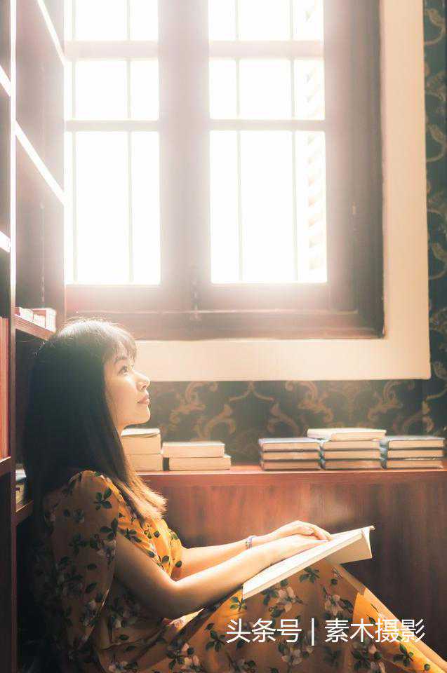店内是图书馆,可对窗取景,窗外透入的柔光会使镜头有朦胧感。