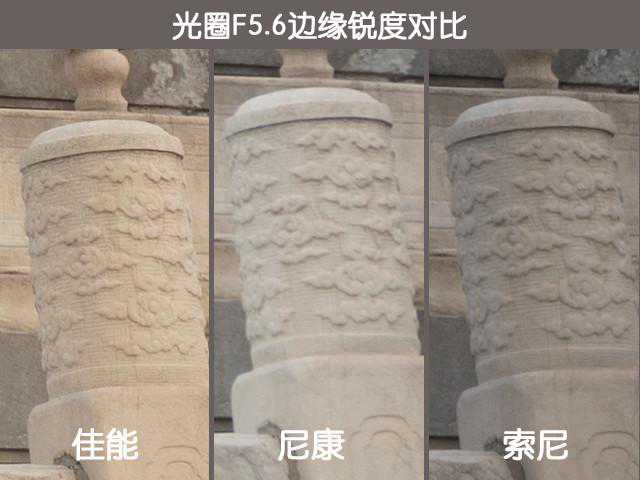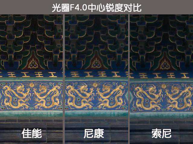 从实拍的效果来看,三支广角镜头都出现了桶形畸变问题,不过从房檐以及地面上路砖的形变来看,三支镜头的畸变程度从大到小依次为尼康、索尼、佳能。因此,佳能EF16-35mmf/4LISUSM在畸变控制能力上同样有着顶级的水准。