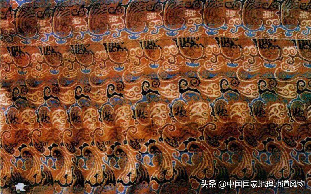 ▲从上到下依次为“五星出东方”织锦护膊,黄金面具。图1/视觉中国图2摄影/刘艳晖