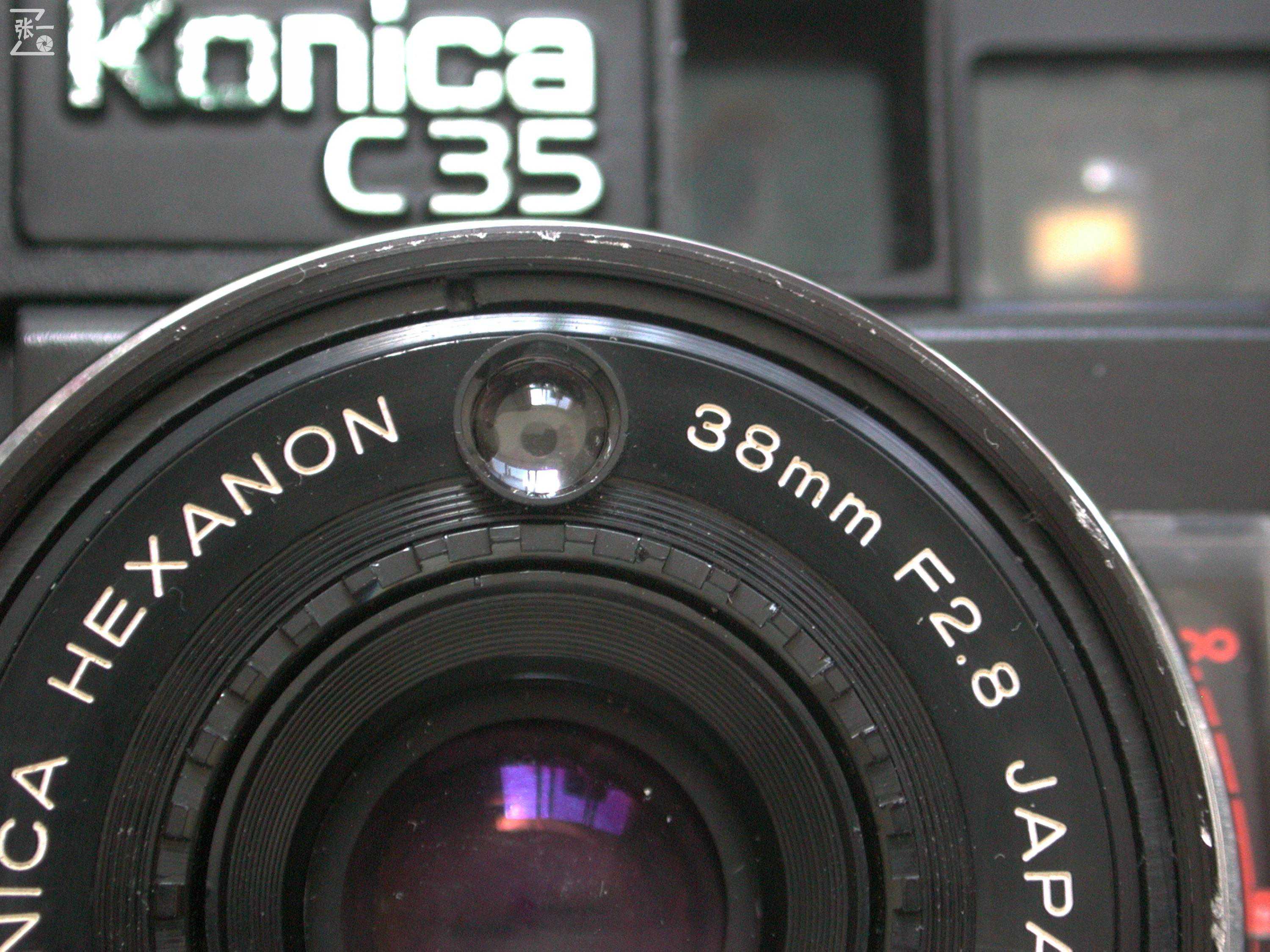 虽然这款KonicaC35AF是世界上第一款自动对焦的相机,但毕竟是将近50年前的产品了,因此该机的性能以今天的技术指标来看就并非那么有吸引力了。该机配装的为一枚Konica自家的Heaxon38/2.8镜头,该镜头为三组四片结构。在镜头上部中央的为该机内置的CdS(英文硫化镉CadmiumSulphide的缩写)测光系统的电眼;下方对应位置则是该机的胶片感光度显示窗口,该机的ASA可设定范围为25-400。