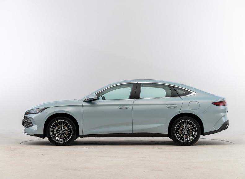 侧身运用大量锋锐的线条进行修饰,腰线从前大灯延伸至后门把手处,搭配明显隆起的下侧裙线条,彰显出较强的力量感。配备时尚精致的轮毂造型,与整车风格较搭。采用的是常规样式的门把手设计,保证了使用的便捷性。