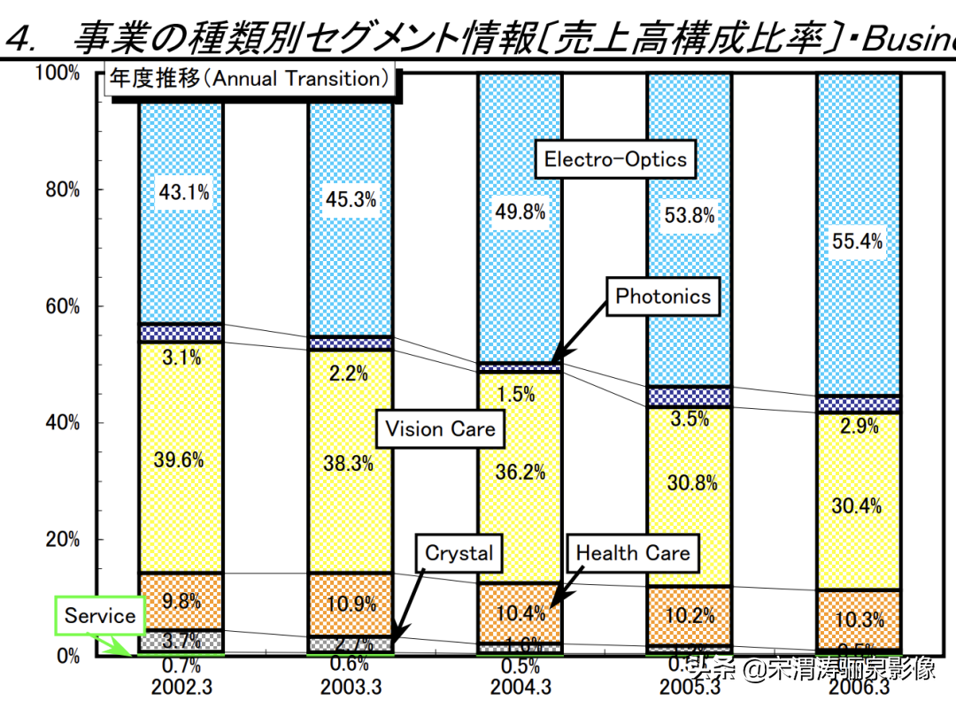 HOYA作为半导体光电,以及光学材料企业,居于产业链上游的主营业务为半导体光电材料以及光学材料,而消费级的业务为眼镜片、眼镜框架、隐形眼镜等。如果能够鲸吞宾得,可以完美的实现产业链内部的打通,并且极大的充实自己的医疗业务,最后将不太优质的宾得影像业务打包出售。