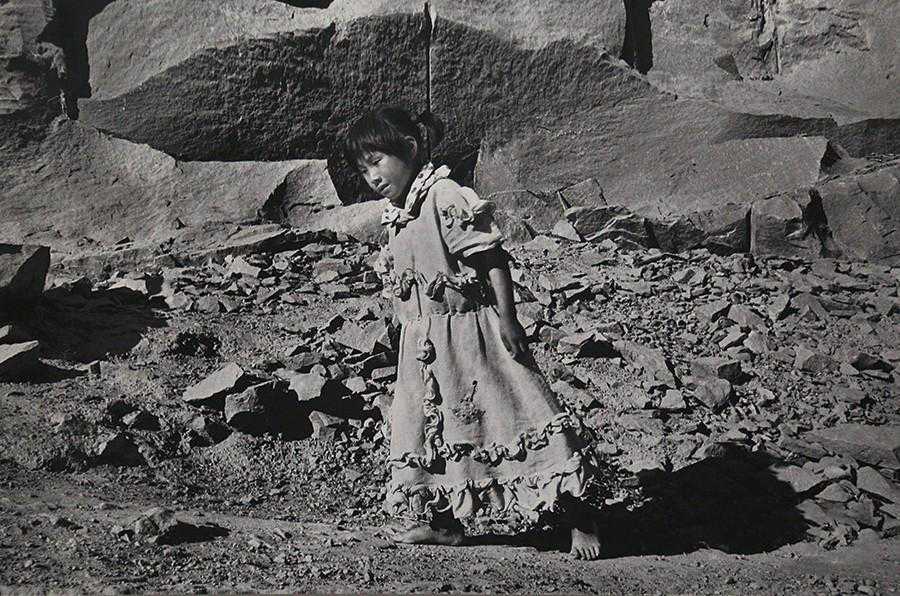 侯小瑾:对,今年西安当代艺术展里面用到了我爸爸的一张照片,是一个小女孩穿了一条裙子在往前走。我估计那是在采石场拍的,背景都是一些石头,地面也是那种碎石粒。那个小女孩光着脚,穿了一条很多花边的裙子,很吃力地往前走,估计她很喜欢这条裙子吧。我特别喜欢那张照片,以前我在我爸爸暗房里见他反复洗过的照片。整个照片的状态让你觉得这个小女孩很可爱,但又觉得有很多东西在里面,可以有很多的解读。