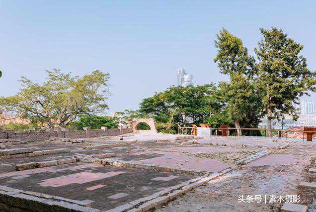 游人最多的地方,模特站上旁边喷泉遗迹,拍摄者站地方仰拍即可避开所有游人。