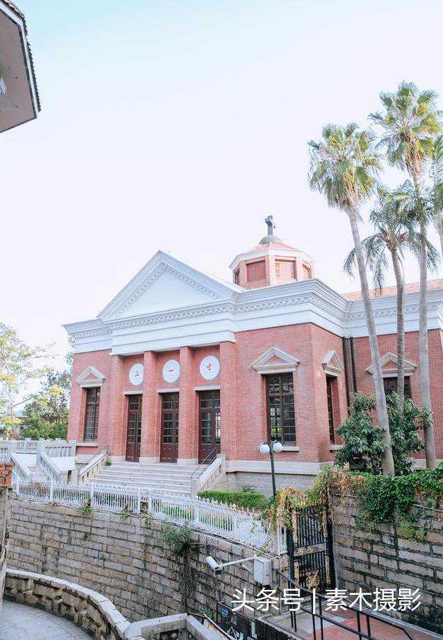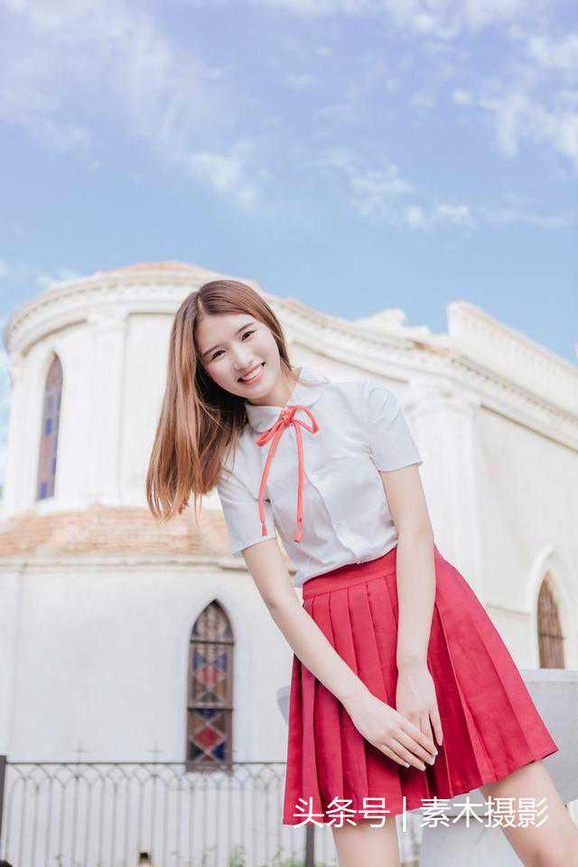 如若取远景,可走上平台,模特站于三一堂左侧,拍摄者稍仰拍,使模特高大一些,挡住左侧杂乱背景。