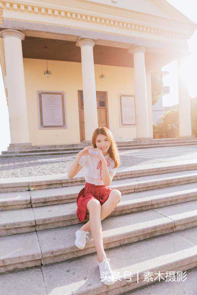 2、转角较高,建议坐在前方台阶,模特坐低,拍摄者采用低角度仰拍。