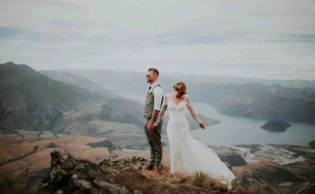 山峰和水是新西兰婚纱拍摄的重要题材,这是一幅画儿,如同在电影里一般。