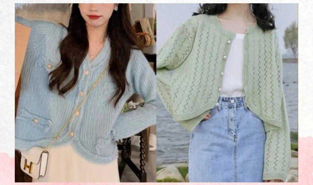 春季早晚温差大,这时候能派上用场的,就是软软糯糯、如阳光般温暖的开衫套装了。