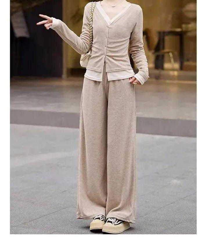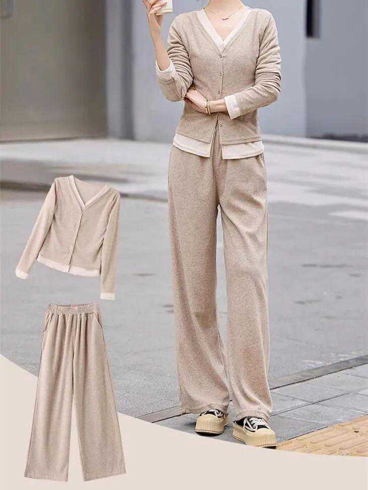 运动假两件开衫+显瘦阔腿裤,两件套只要89.9元!