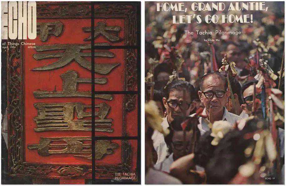 上图:汉声杂志全封面汉声英文版《ECHOMagazine》1974年4月号妈祖绕境封面及内页插图。