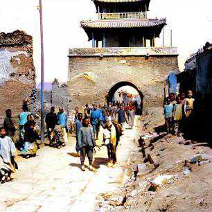 清朝末年的景象,路边都是商贩和店铺。