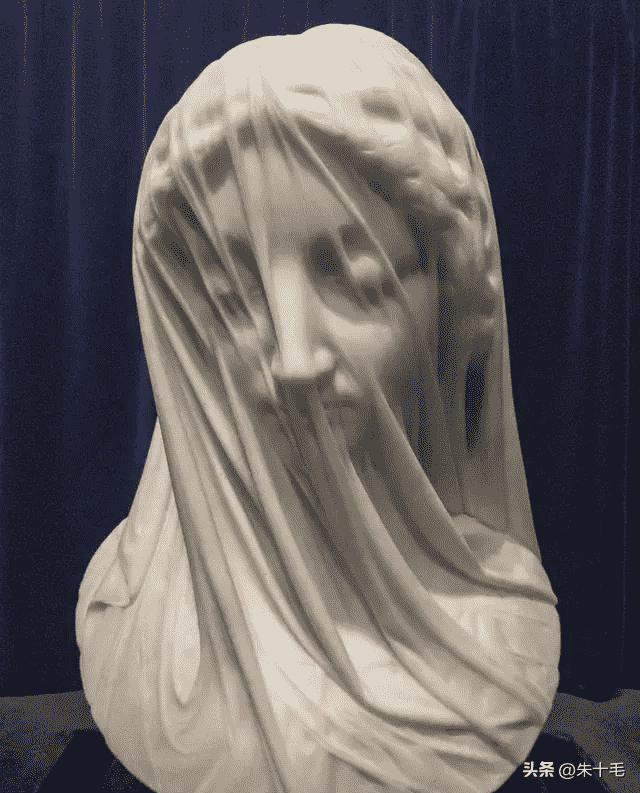 蒙着面纱的圣母玛利亚。由唐·乔凡尼·斯特拉扎(DonGiovanniStrazza)用一块卡拉拉大理石雕刻而成,1850年。加拿大施洗者圣约翰大教堂修道院博物馆藏品的一部分。