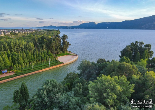 星海半岛湿地公园,位于官渡区盘龙江入湖口,园区水域面积63亩,绿地面积81亩,广场面积2400平方米。公园虽然不大但却精致怡人。随着季节变换,一年四季花开草绿。公园内有林缘花草、湿地滩涂、响声绿岛和瞭望平台等多个景观区。紧邻滇池和盘龙江入湖口的观景台和栈道,不仅为游客搭建了亲水近水的平台,成为远眺滇池烟波浩渺和"睡美人"的绝佳观赏点之一,是市民周末休闲的好去处。