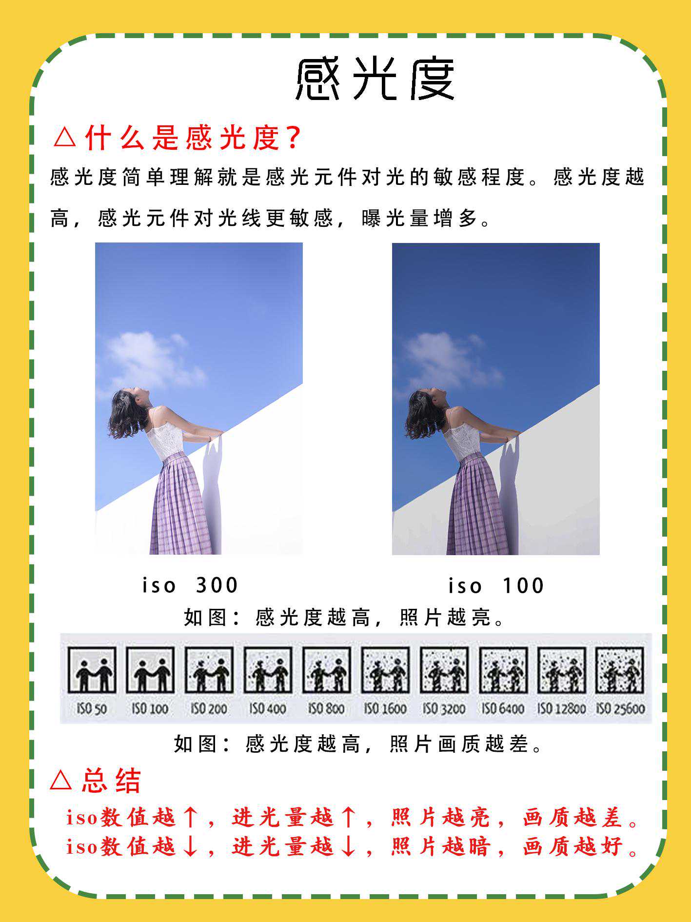 只能在M手动模式调节,宝宝们一定要避开一个误区,感光度不是越高越好,感光度越高画质就会越差,平时在100左右就好