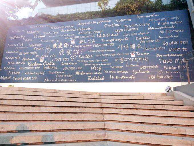 说真的,除了住在附近的人和摄影师应该很少人知道这个表白墙吧!这个表白墙虽然只是一面墙,但她说复制法国表白墙,据统计上面有300多种语言的“我爱你”的书写体,即使我们去不了法国,我也一样爱你啊!来这里打卡,一定很幸福也很浪漫,我去的那天下雨,可能是因为自己去的吧!哭泣!