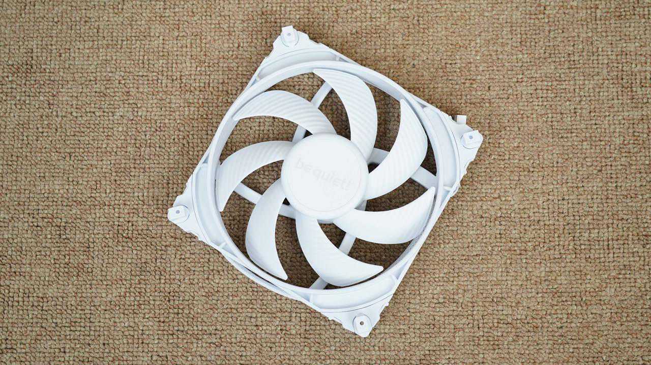风扇的外观造型相较SilentWings4变化不大,此次入手的是白色版,颜值非常出众。