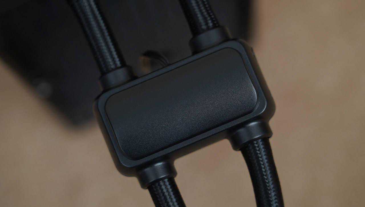 和常见的水冷散热器不同,该散热器采用了泵、头分离式设计,水泵被置于靠近冷排一侧的水管上,由于水管是软性材料,所以减震降噪效果更佳。