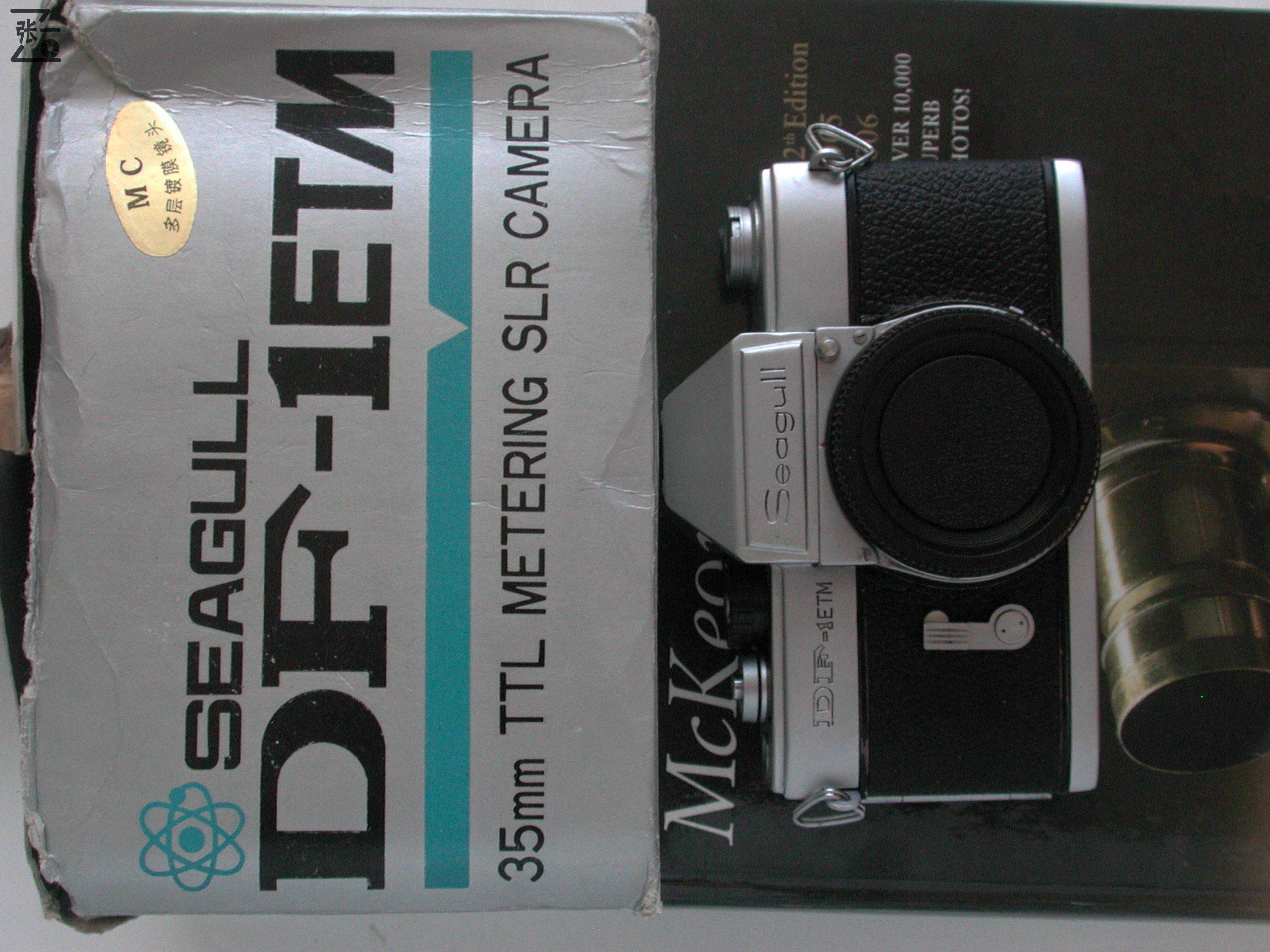 在这台海鸥DF-1ETM相机的外包装纸盒上,我发现了一个很有意思的地方:中文只写有“35mm内侧光单镜头反光照相机”(下图1),而英文却写了“35mmTTLMeteringSLRCamera”(下图2).要知道内侧光是包括TTL测光和非TTL测光两种模式的,而TTL(通过镜头测光ThroughTheLens的缩写)测光绝对不是一回事儿,TTL测光无疑是更先进的和更准确的,但是中文却未作任何说明。