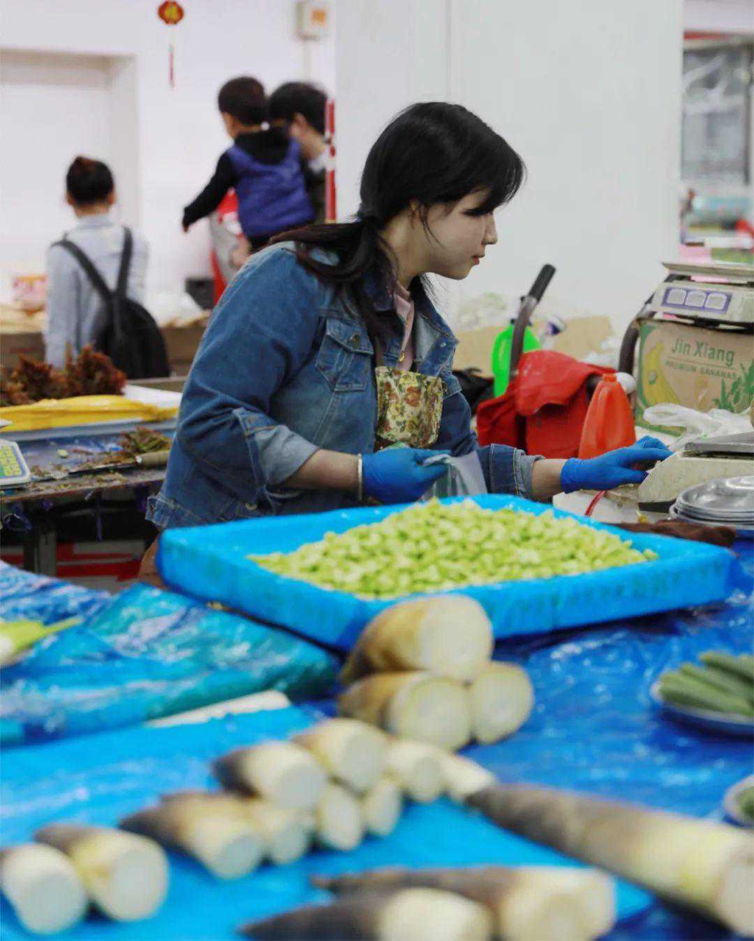 ▲菜贩除了与客人沟通和售卖,还需要不时地打理蔬菜。