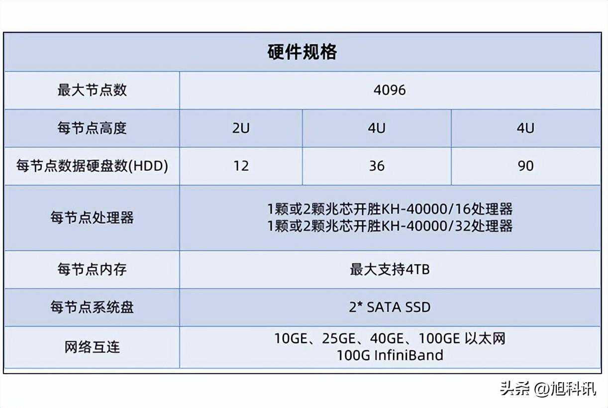 同时,每个节点还有两块SATASSD作为系统盘,内存最大4TB,如果是4096个节点那就是16PB。