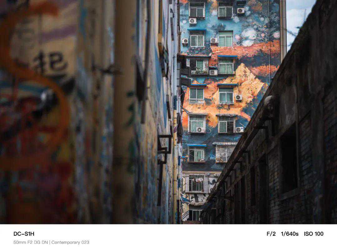 穿过狭窄的小巷,把右侧围墙看作一条引导线,远近的涂鸦墙在F2光圈下呈现出自然的虚实过渡效果。
