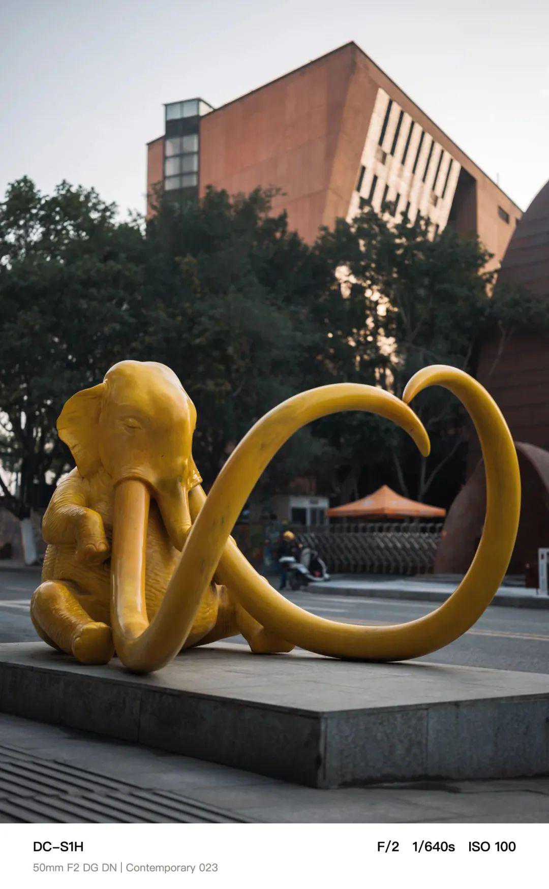 超广角的确有“移步换景”的能力,稍稍改变构图,就能以不同的视场角营造出更强的纵深感和空间感,比起上一张图里50mm焦段下的大象雕塑,用17mm逐渐靠近被拍摄物体,变形夸大的效果就会非常明显,也更能体现出“象牙”的气场。