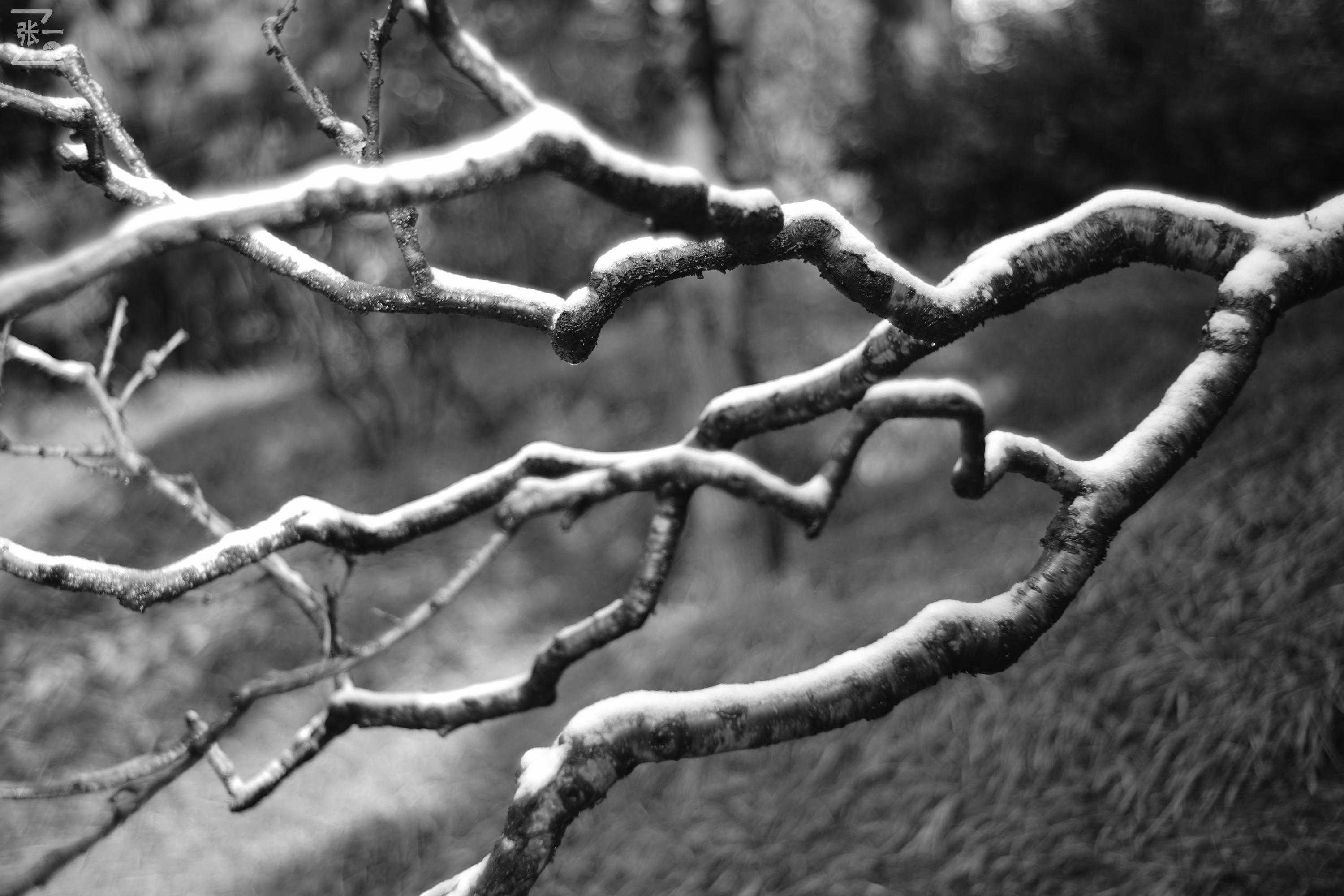 此次拍摄以雪景为主,所以根据“白加黑减”的测光原则,将曝光补偿增加了1/3档,而之前我都是完全用相机的内侧光的。根据拍摄主体的实际情况,部分图片拍摄的为黑白图片。黑白照片是在相机中直接设置为拍摄黑白图片,并非先拍摄彩色后转为黑白的。
