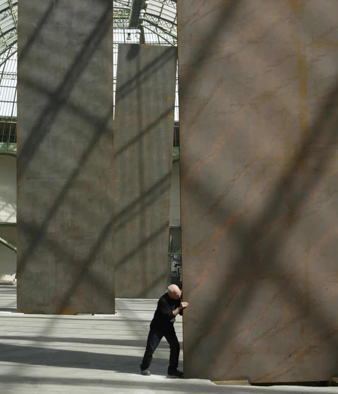 Serra在2008年于巴黎大皇宫内亲自布置自己的作品《Monumenta》。摄影:RaphaelGaillarde