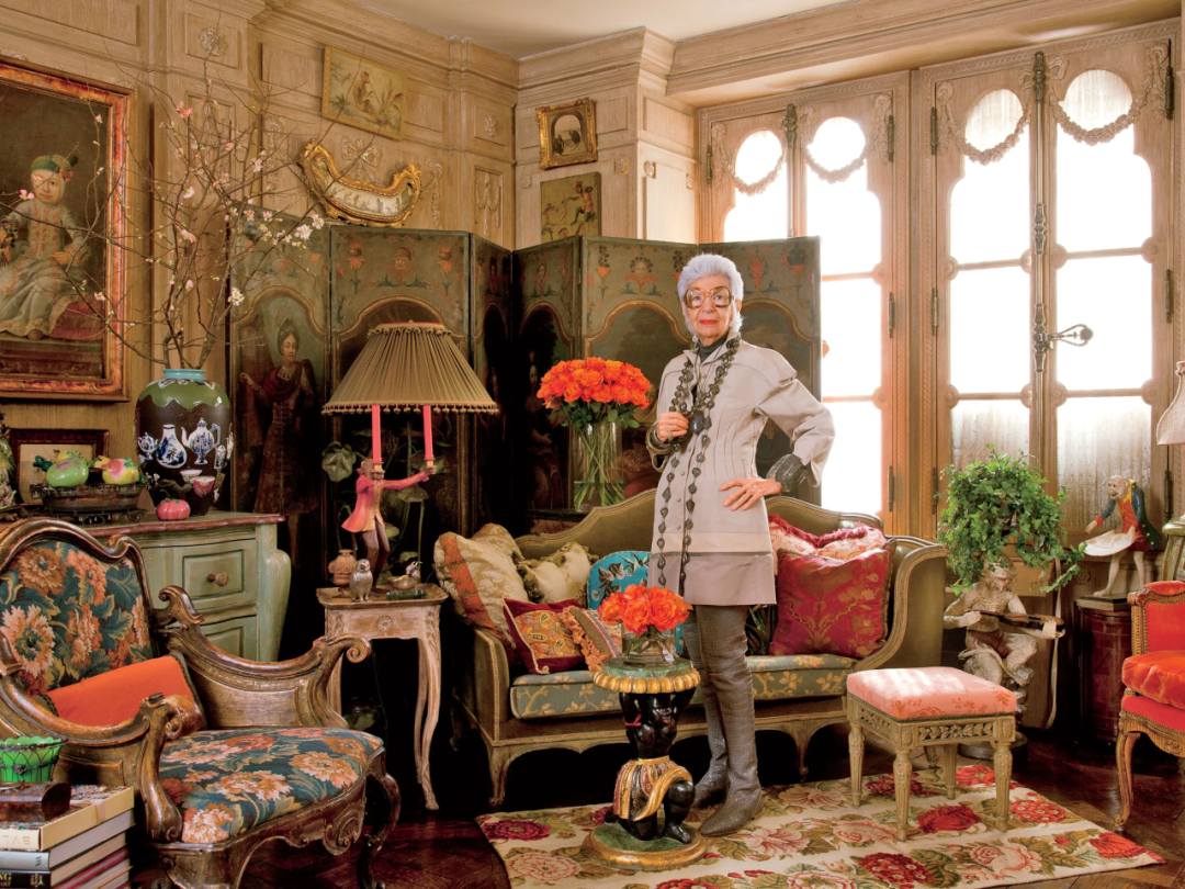 IrisApfel在她的家中。她与她的家都有自成一派的风格。©2011THECONDÉNAST