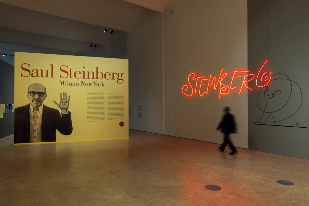 Lupi设计的2021年三年展博物馆内的“SaulSteinbergMilanoNewYork”展览视觉。