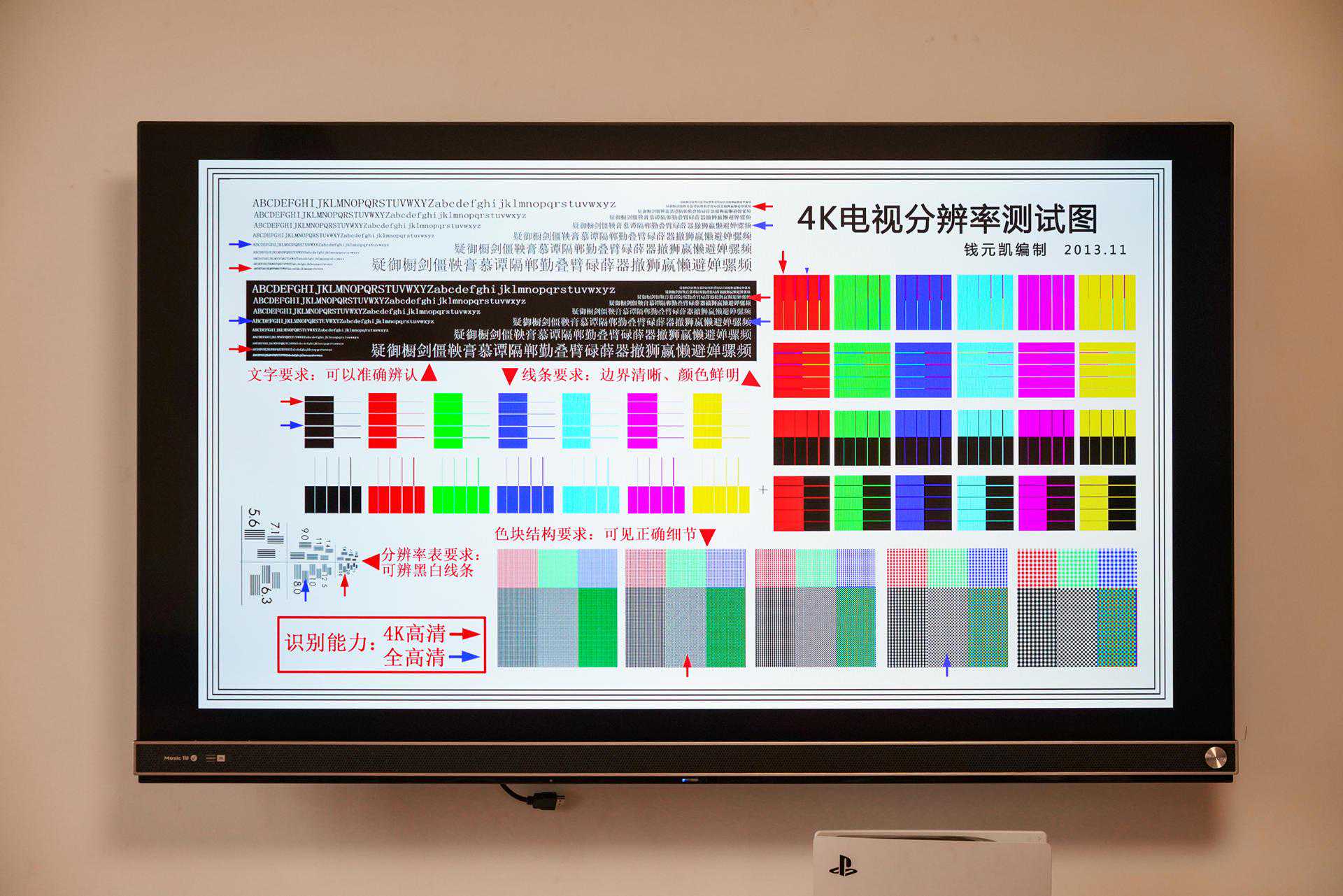 简单的体验了电视智能系统的播放,接下来连接到我的MacBookpro看看真4K电影的效果。在这之前,先启动大名鼎鼎的钱元凯教授的4K电视测试图看看它的表现。