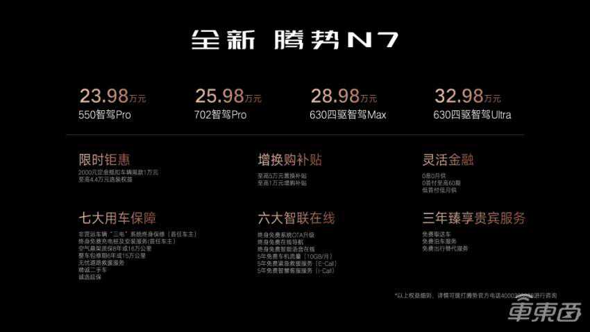 新款腾势N7价格与权益