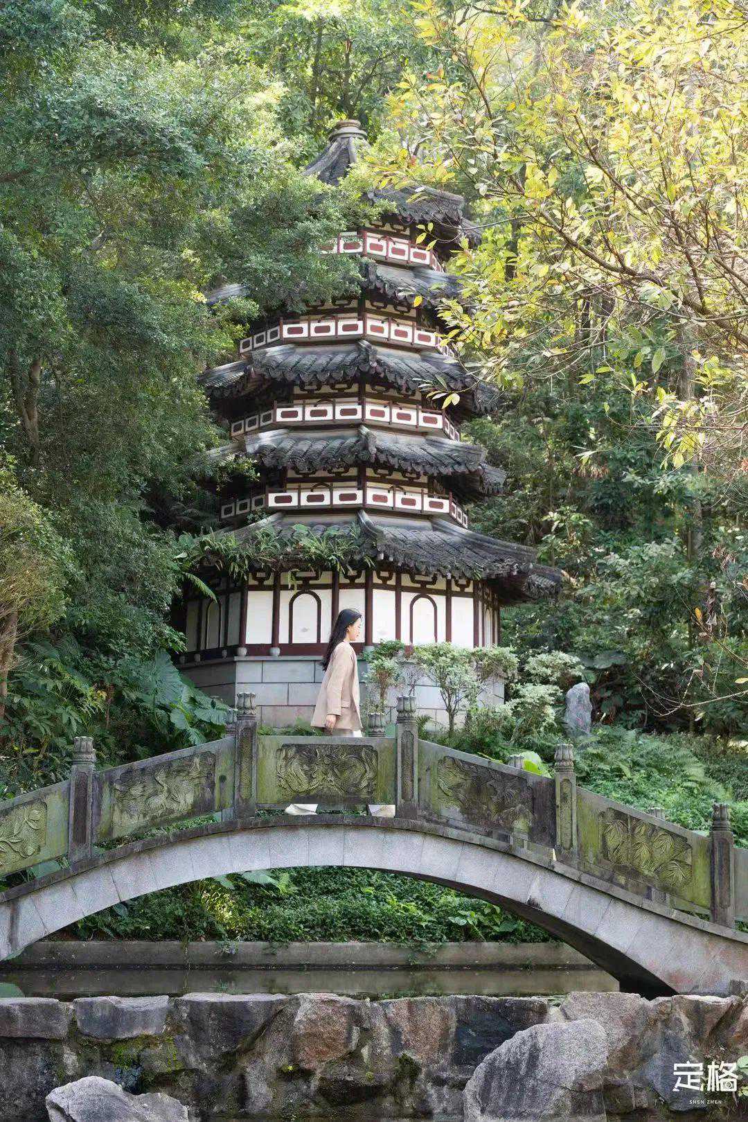 在深圳的西北部,隐藏着一处爬山赏景的好去处。在这里,你可以欣赏山、园、塔交融的美景,邂逅凉风习习的夏日,拍一组古装大片。