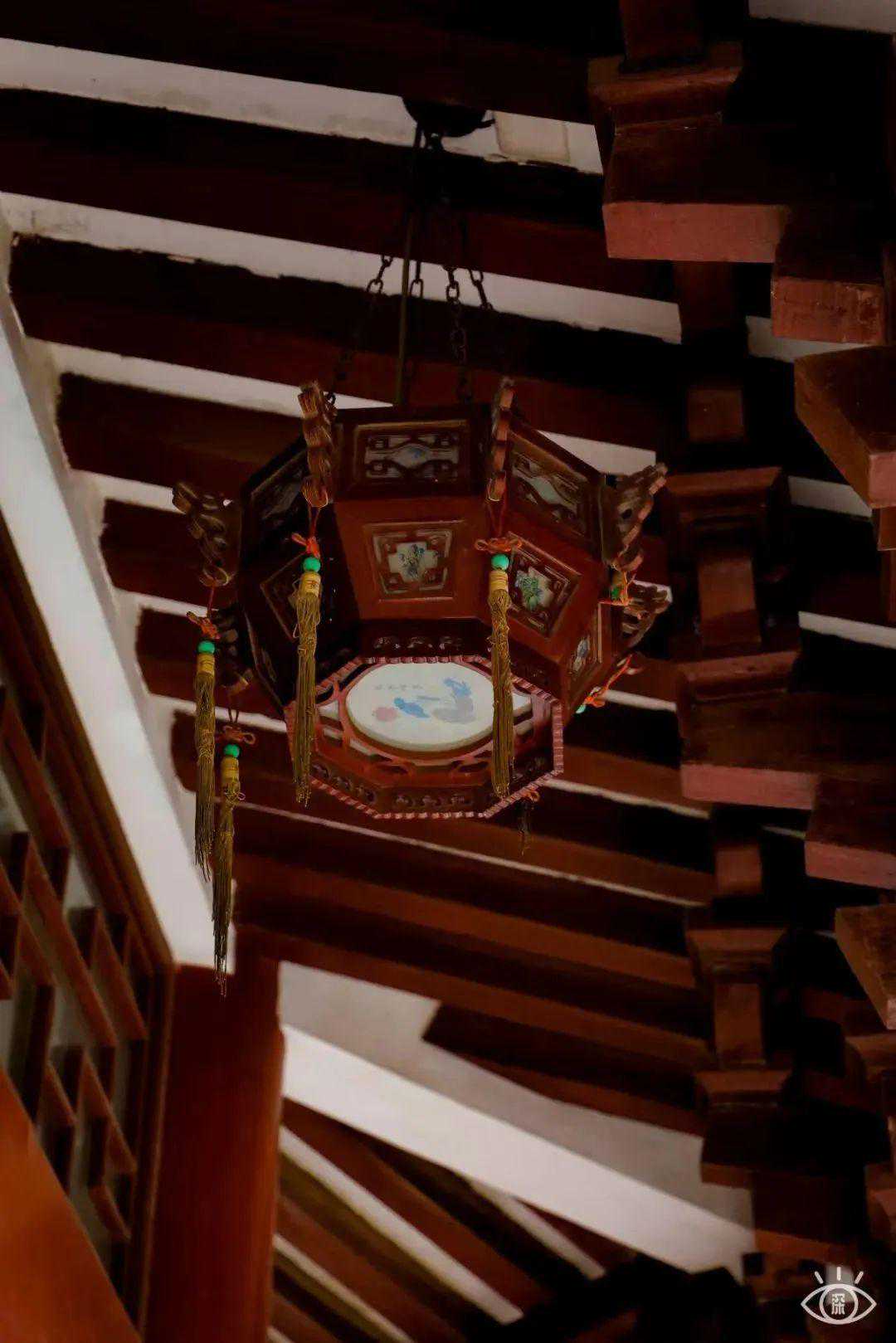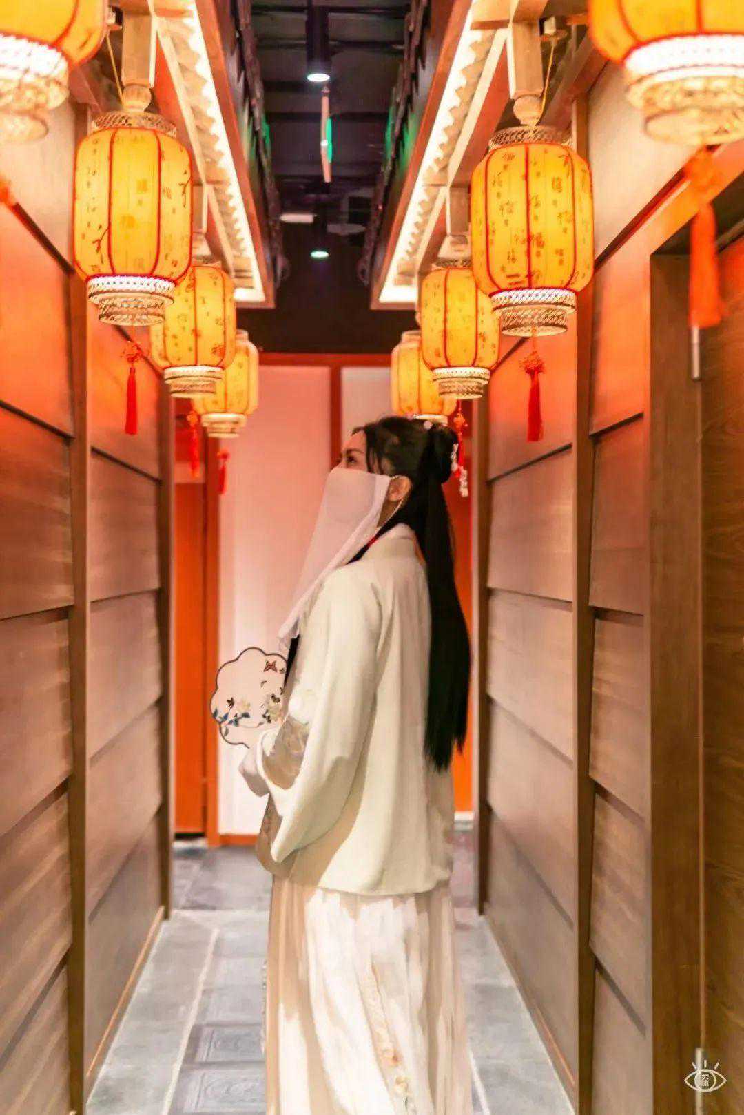 一走入馆中,古色古香的庭院便映入眼帘,只见青砖黛瓦、绿植环绕。走入廊中,还能看见灯笼高挂木门轻掩,给人感觉宁静而闲适,连脚步都不禁轻慢下来。