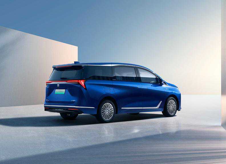 车身造型变得更加方正立体,第二、三排采用隐私玻璃,配合熏黑的B/C/D柱设计,打造悬浮式车顶的视觉观感。新车依旧采用双侧电滑门设计,配备密辐式铝合金轮毂造型。尾部采用晶透云阶的LED贯穿式尾灯设计,中间辅以银色镀铬装饰,与后包围处的银色装饰条形成上下呼应的效果。