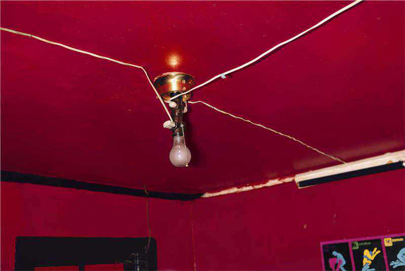 然而,这些作品在刚问世的70年代,也是不被接受的。埃格尔斯顿最著名的一幅红色照片被称为《红色天花板》,整个画面全是红色,强势,极有冲击力,几根白色的电线穿梭其中。同时代但资历更老的摄影师安塞尔·亚当斯(AnselAdams)就看不上埃格尔斯顿的作品,说他“拍不好,就把画面弄成红色的”。可埃格尔斯顿自己说:“《红色天花板》是这么有力。当你看着它,就像是鲜红的血溅湿了墙壁。时常一丁点儿红色就够了,但使用大面积的红是一种挑战。”埃格尔斯顿的彩色摄影就是伴着这样的争议与批判横空出世的,争议不只在大众,更在业内。