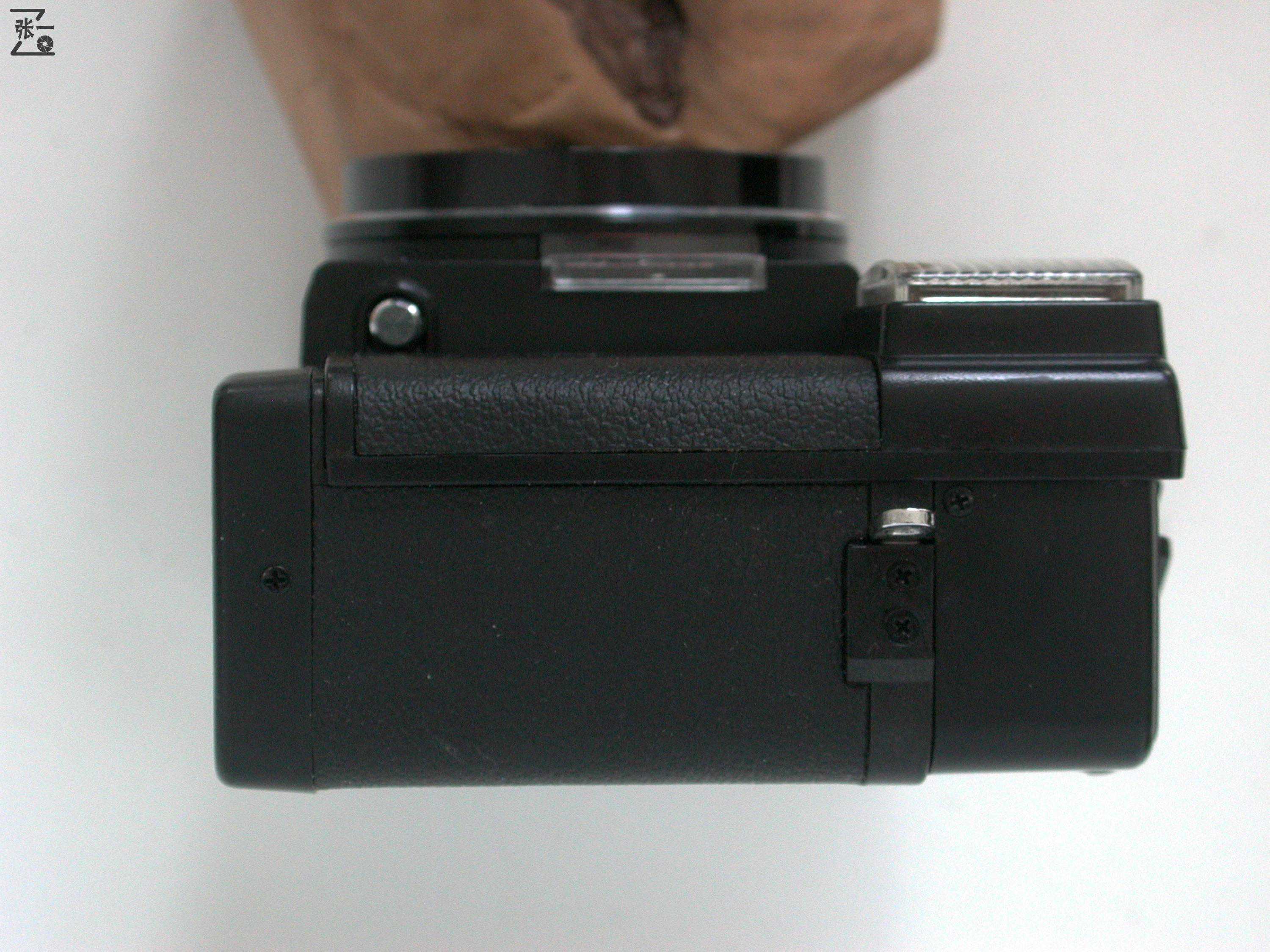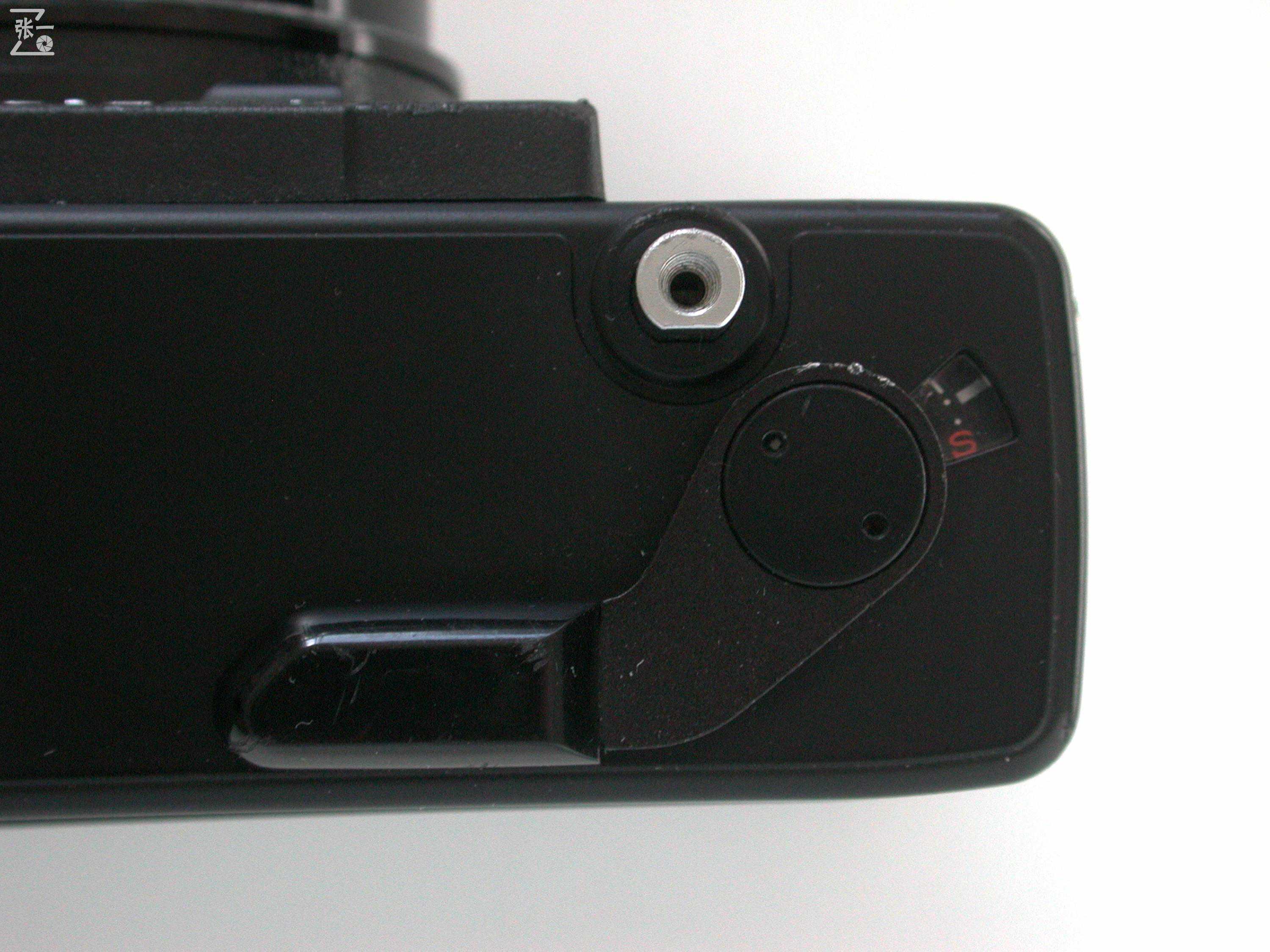 这款KonicaC35AF的镜头盖设计也非常有趣,是与用于对焦的两个测距窗口的保护盖合为一体的,非常像英文字母“T”。我个人估计采用的设计,其主要目的还是为了保护该机的自动对焦系统。毕竟是世界上首台具备了这样功能的照相机。但有一点我觉得很奇怪,这台相机的机身上并没有任何产地标识,倒是镜头盖和原装的相机套上有Japan的字样。
