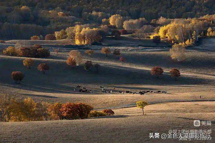 D2:上午:透风沟日出,光影中起伏的山峦,草原,河流,南井出牧,红色的蔡木林,线条,金色的麦田、双泡子、小桥、水映白桦、水中的山丁树下环境人像。