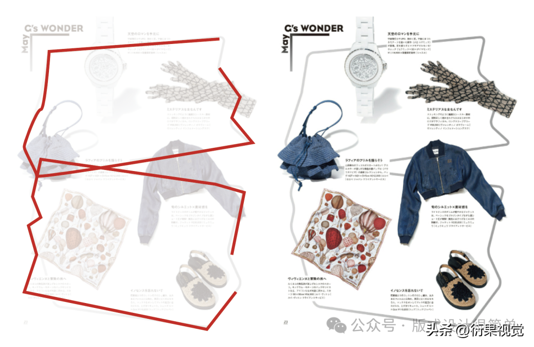 运用色块或边框将多张去底图片包围起来,并将图片紧凑地排列,使它们群组一起,让读者很自然地将视线集中在图片上,画面也变得更加清晰明了。