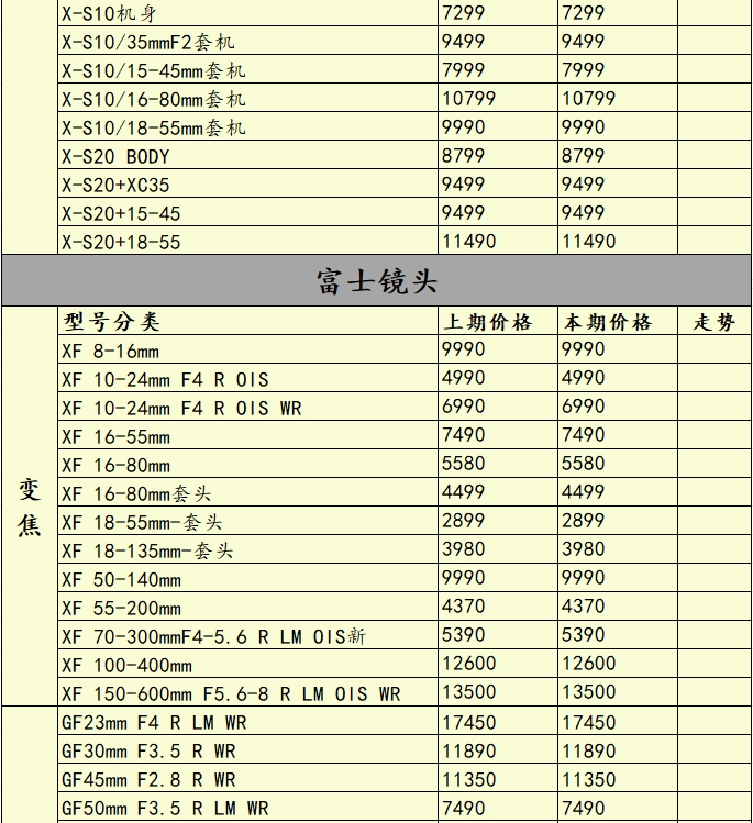 富士方面,半画幅缺货且溢价;腾龙,老蛙镜头具体行情价格可以参考狼族下列报价。