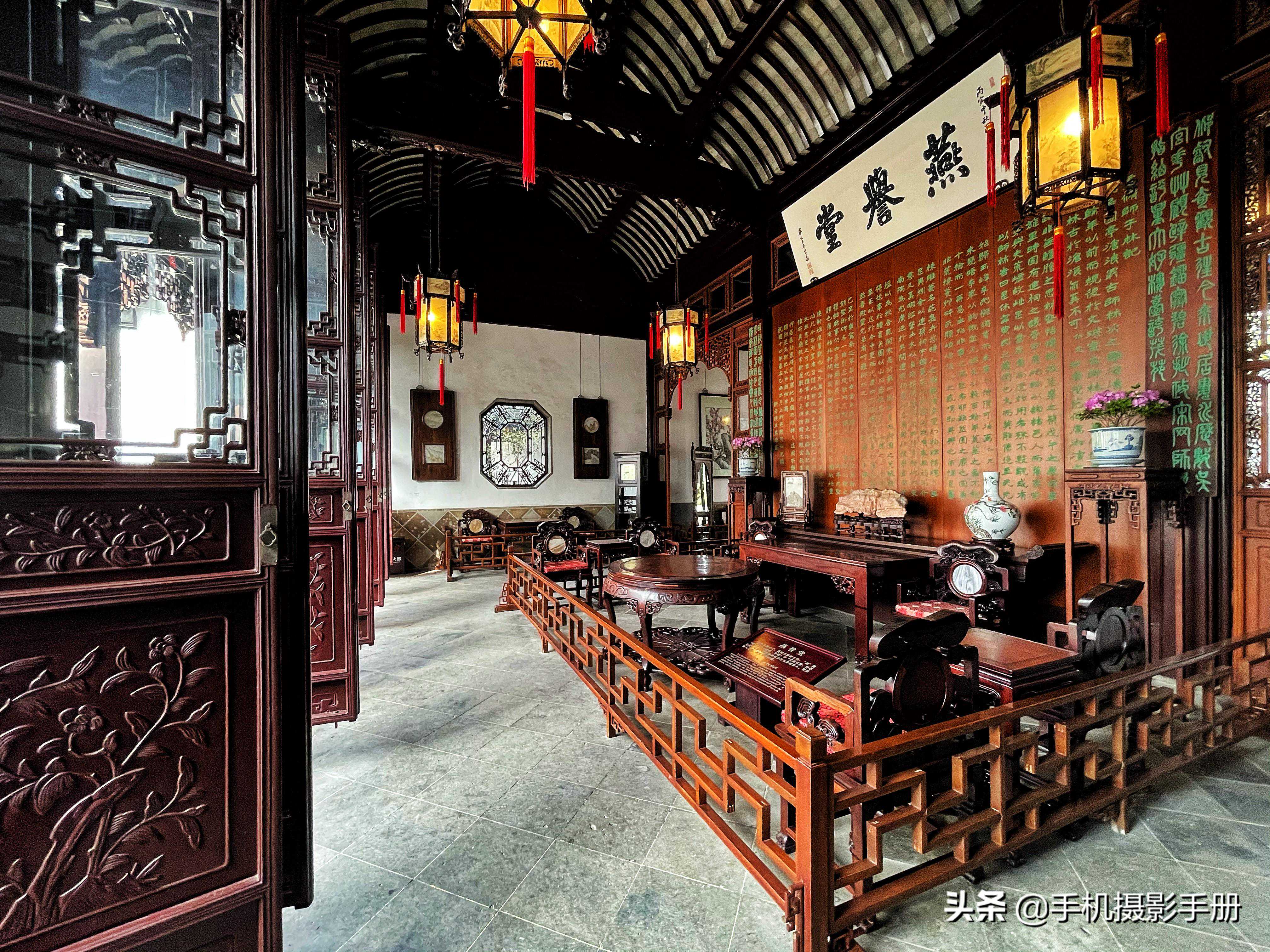 花园分为东、中、西三部分,东园开阔疏朗,中园是全园精华所在,西园建筑精美,各具特色。园南为住宅区,体现典型江南民居多进的格局。