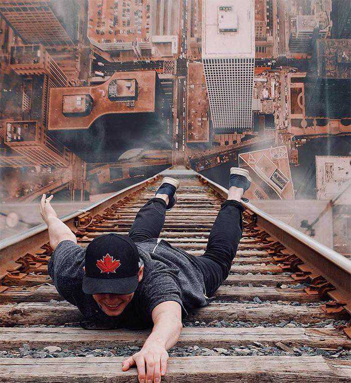 很多人以为摄影视觉类的创意作品,只能用电脑Ps制作,其实不是的,在手机上用各种修图软件也能做出来,比如下面几组案例: